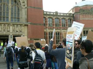 Staff and students took part in the demonstration which saw speeches, the submission of a petition with over 1700 signatures on it to the University management, a noisy protest march, and a mock archaeological ‘dig for truth’ in which we sought to uncover the University’s reasons for its proposed redundancies.
