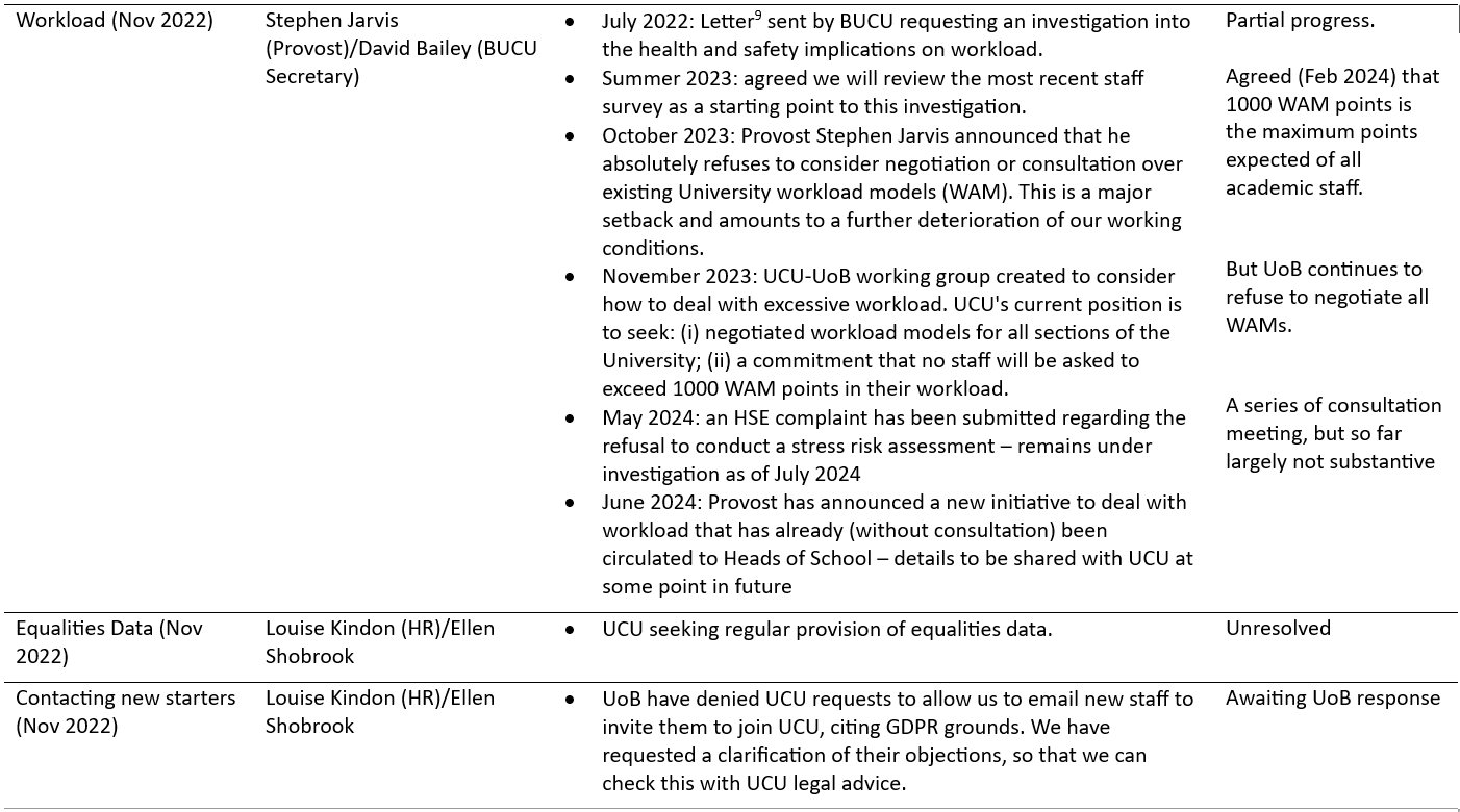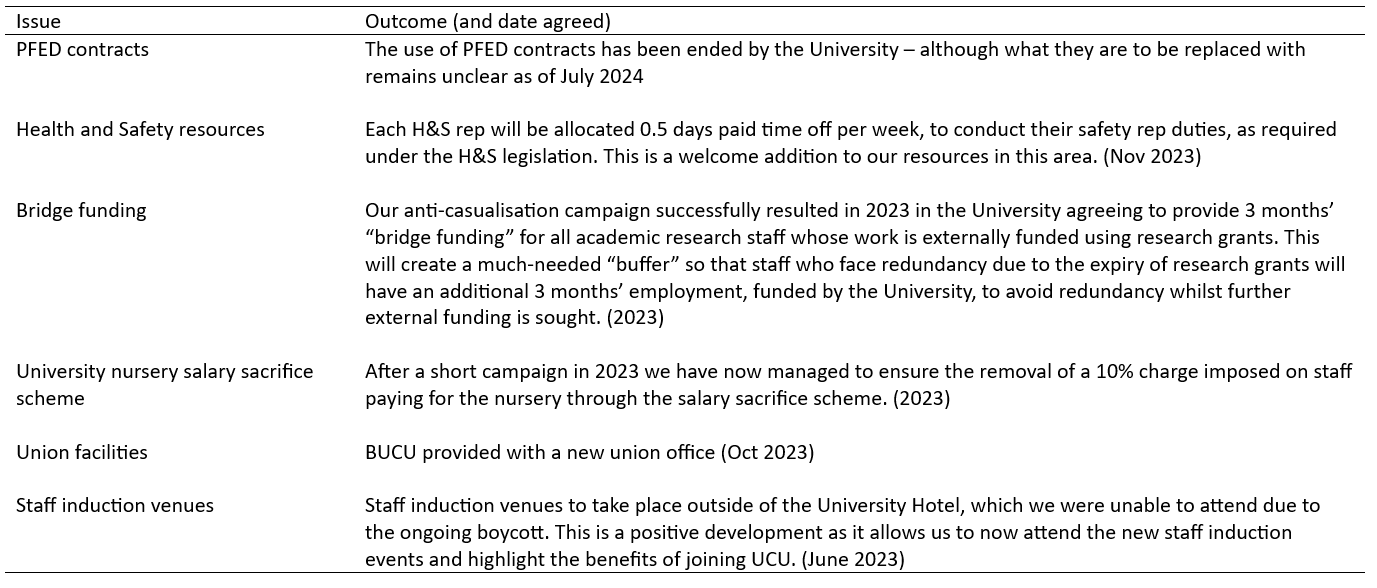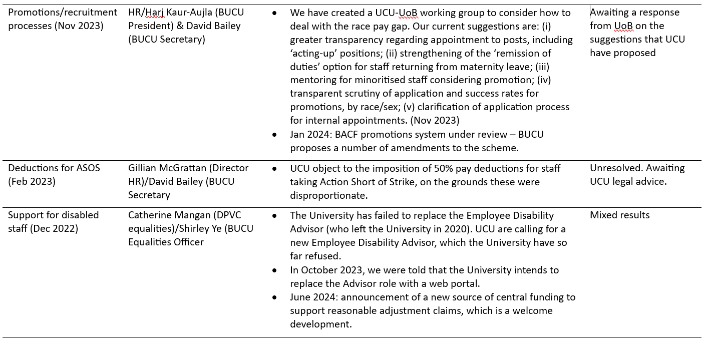 The following are ongoing local negotiations with the University of Birmingham management – also see the bottom of the page for successful outcomes since 2023: